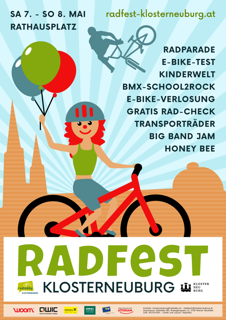Erstmals veranstalten Radlobby und Stadtgemeinde Klosterneuburg gemeinsam ein großes Radfest. Am Rathausplatz wartet auf die Besucher*innen ein Programm für alle Altersgruppen. Eine Gruppe auf klassischen Rennrädern liefert einen Vorgeschmack auf IN VELO VERITAS. Vorbeischauen lohnt sich: Samstag u. Sonntag 7./8. Mai 2022.